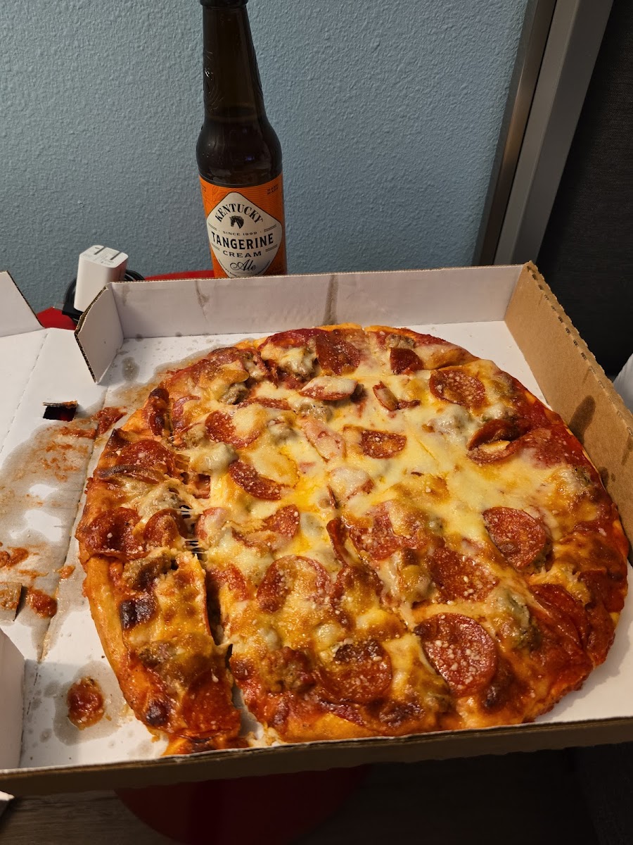 I had been wanting to try this place for a while. I had heard good things. I ordered a 16 inch pizza with sausage, pepperoni and onion. Hands down it’s the best pizza I’ve had since moving down to Janesville. They definitely don’t skimp on the cheese. If I had known better, I certainly would’ve ordered a smaller pizza as I was only able to finish about a quarter of it. I’d say a 16 inch probably easily feeds 3 to 4 people. This place is takeout only as there is very little space, But it is well worth the try. I do believe they also deliver. I would definitely recommend this place over all the other options in the area for a great pizza.