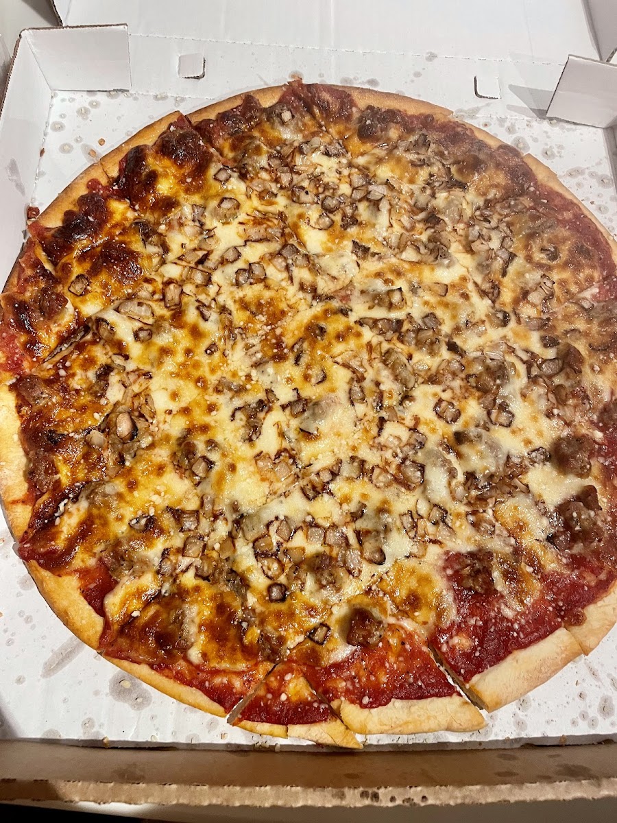 Hands down best pizza on the earth! I have been eating here for almost 15 years and never been disapointed. Get there sausage peperoni and you will not be disappointed. Heavy cheese, fresh sausage, semi sweet sauce. No dine in options really. 12in feeds 2.